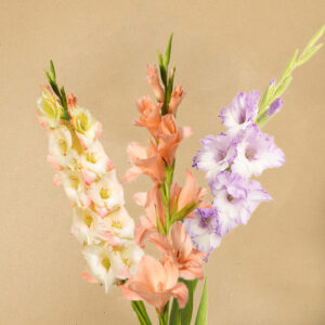 De bloemen die uit de gladiolen bloembollen groeien zijn heel geliefd als plukbloemen en als je de gladiolen bollen royaal in je tuin plant, dan kun je er in de zomer volop van plukken. Plant de bloembollen in april of mei als de vorst achter de rug is, op een zonnige, warme beschutte plek in kalkhoudende en goed doorlatende grond. De knollen kunnen niet tegen fysiek contact met stilstaand water en hebben veel voedingsstoffen nodig. Plant de knollen van de hoge soorten dieper zodat ze steviger staan. Ondersteun ze wel zodat ze niet omwaaien in de wind. Als de gladiolen bollen eenmaal hun pracht laten zien, zijn de bloemen geweldig voor in boeketten omdat je er zo heerlijk mee in hoogte kunt variëren. De gladiool maakt graag een groots gebaar in de vaas als ze overal bovenuit steekt. Met de bloemen aan weerszijden van de stengel worden we dubbel verwend. Van zuiver wit tot geheimzinnig paars. Van felgeel tot brandweerrood. Deze bloem is een blikvanger in ieder boeket!