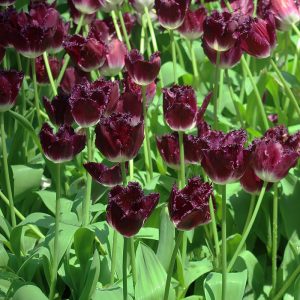 Tulp Gorilla is een gefranjerde tulp in een rijke bordeauxrode tot dieppaarse kleur. Een mooi kleurenpalet met bijzondere gevormde bloemblaadjes, hooggehouden op een lange stevige steel.