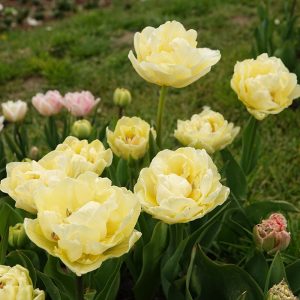 Tulp Verona is een vroegbloeiende tulp en lijkt met de grote gevulde bloemen erg op een pioenroos. De bloemblaadjes hebben een mooie romige, zachtgele kleurtint, afgewisseld door een zilverwitte kleur richting de randjes. Een mooi kleurenspel, met een heerlijke zoete geur.